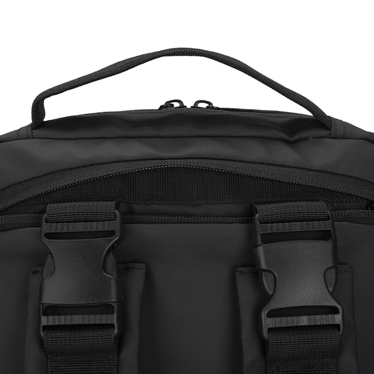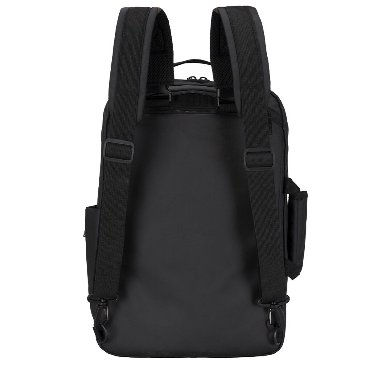 Dos compartimientos. Bolsillo frontal. Organizador interior con cierre. Portanotebook 15,6” Bolsillo con cierre en fuelle. Tira de espalda extraible. Altura regulable de hombro.