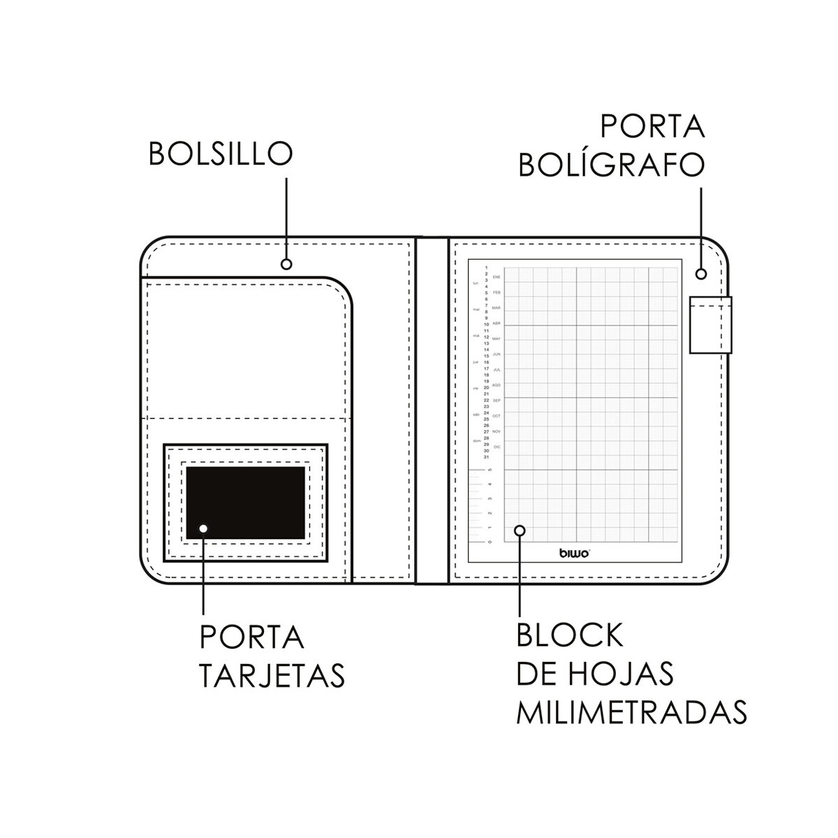 Con block, hojas milimetradas, porta bolígrafo, porta tarjetas