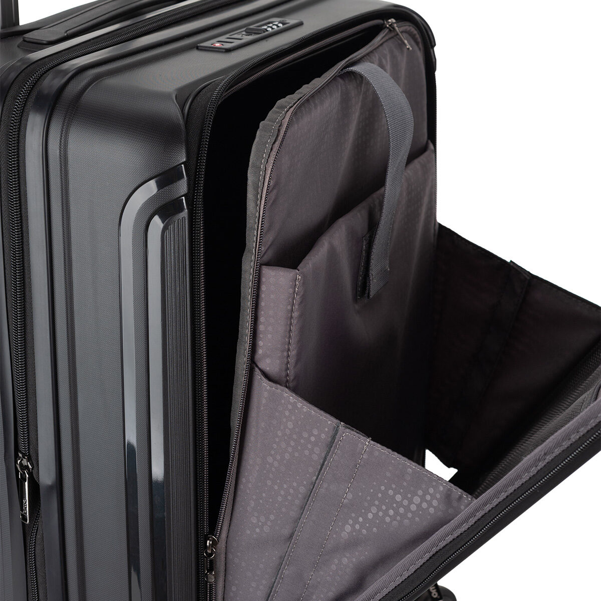 Maleta de cabina 20″ Apertura frontal independiente para portatil, ruedas dobles y giratorias 360, cierre con seguridad de candado TSA, sujetadores de ropa, fuelle expandible de 8cm.